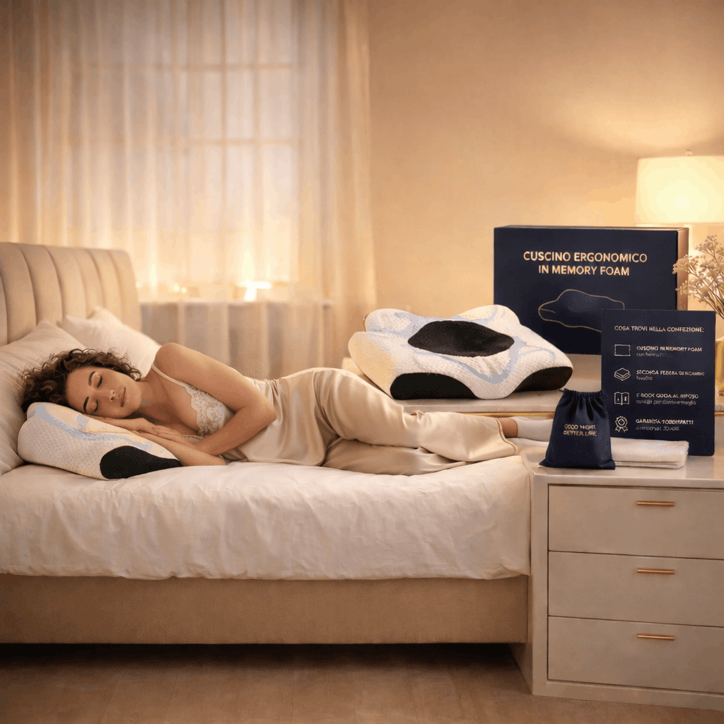 Il vero cambiamento arriva quando il collo torna ad essere allineato nel modo giusto. Chi cerca un cuscino cervicale ergonomico memory foam lo fa perché ha capito che il problema non è dormire, ma come si dorme.